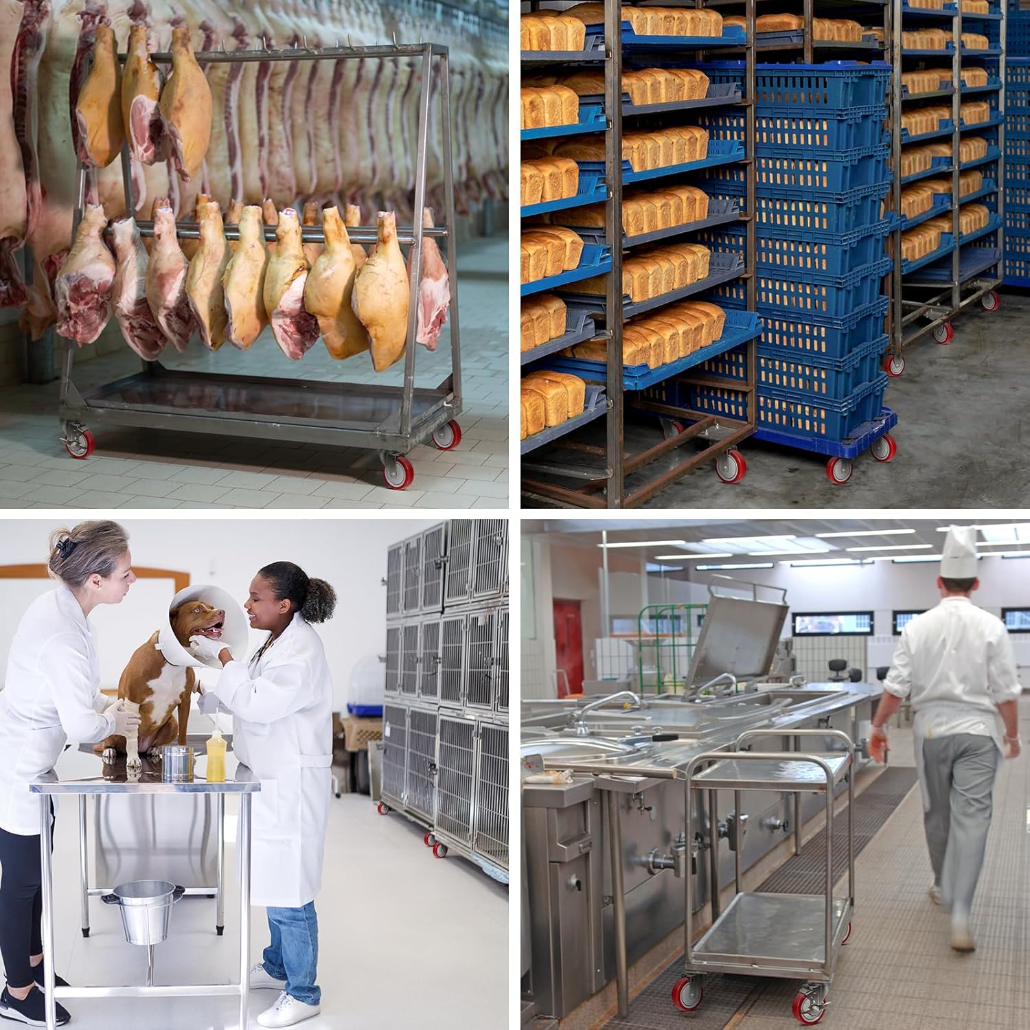 Made with high-quality stainless steel yoke and industrial-grade polyurethane wheels, these heavy-duty casters are engineered to perform in demanding environments. They offer reliable resistance against wash-downs, cleaning agents, steam, caustic solutions, and other harsh environmental conditions
