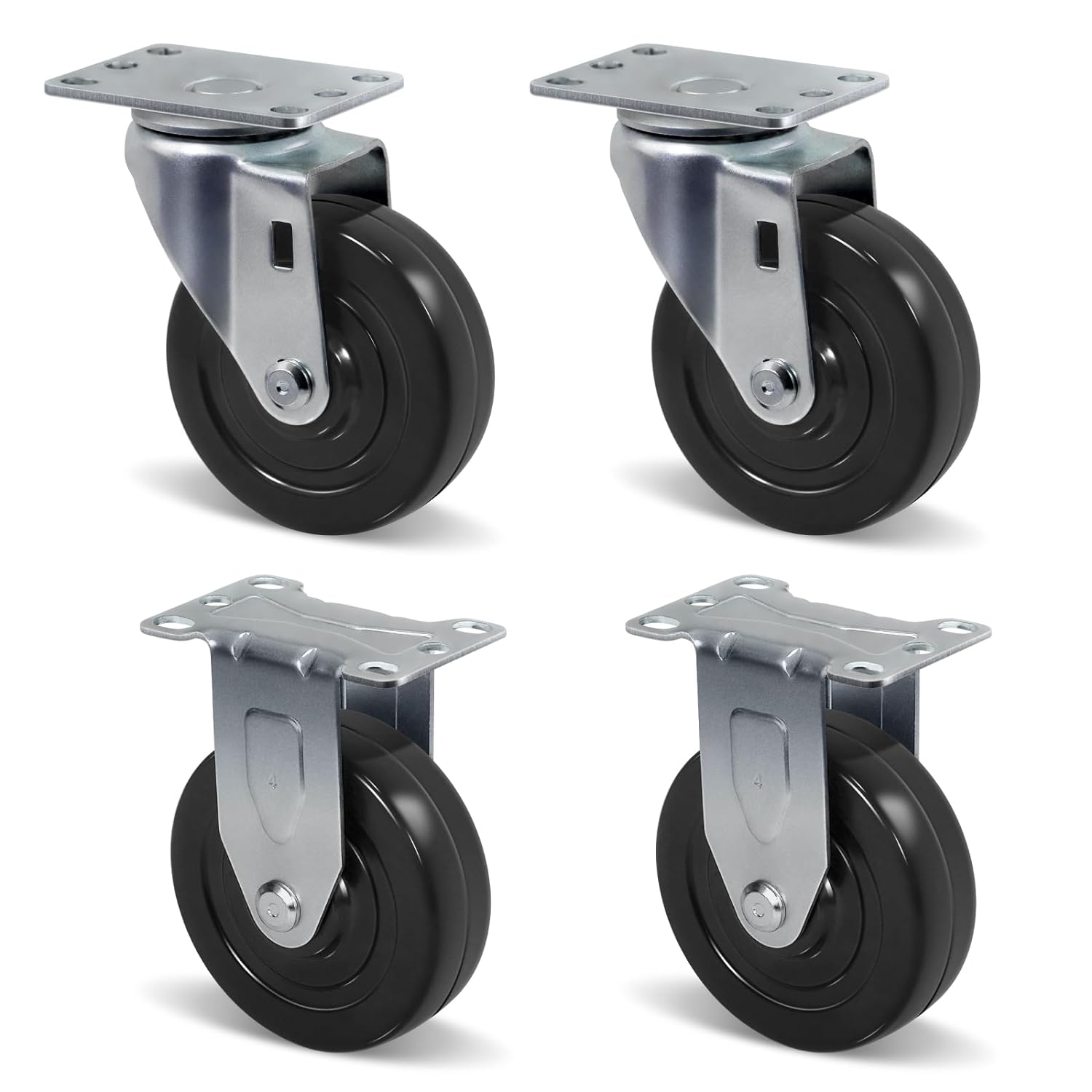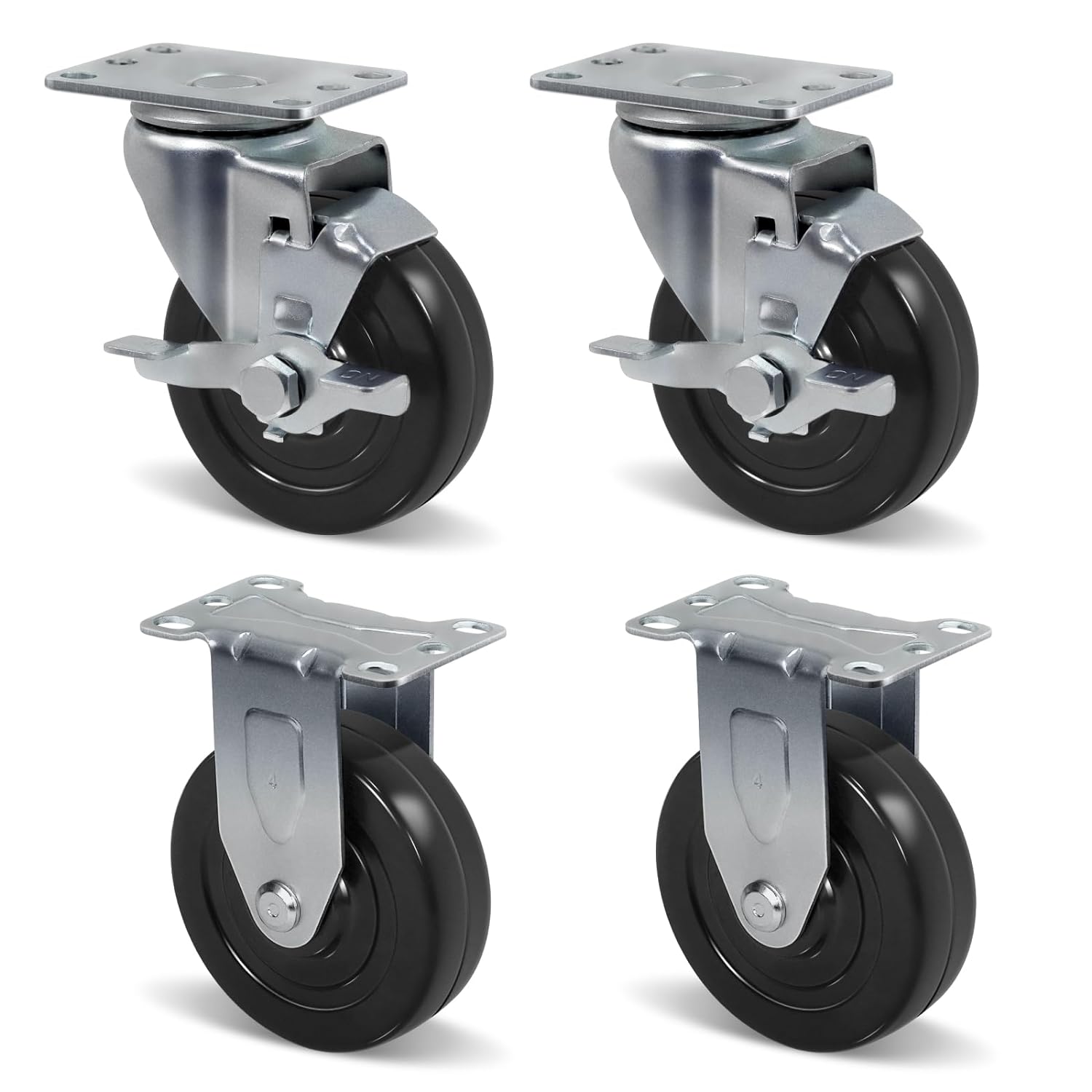 - Each 4" caster supports up to 300 lbs, with a total weight capacity of 1,200 lbs for a set of four.