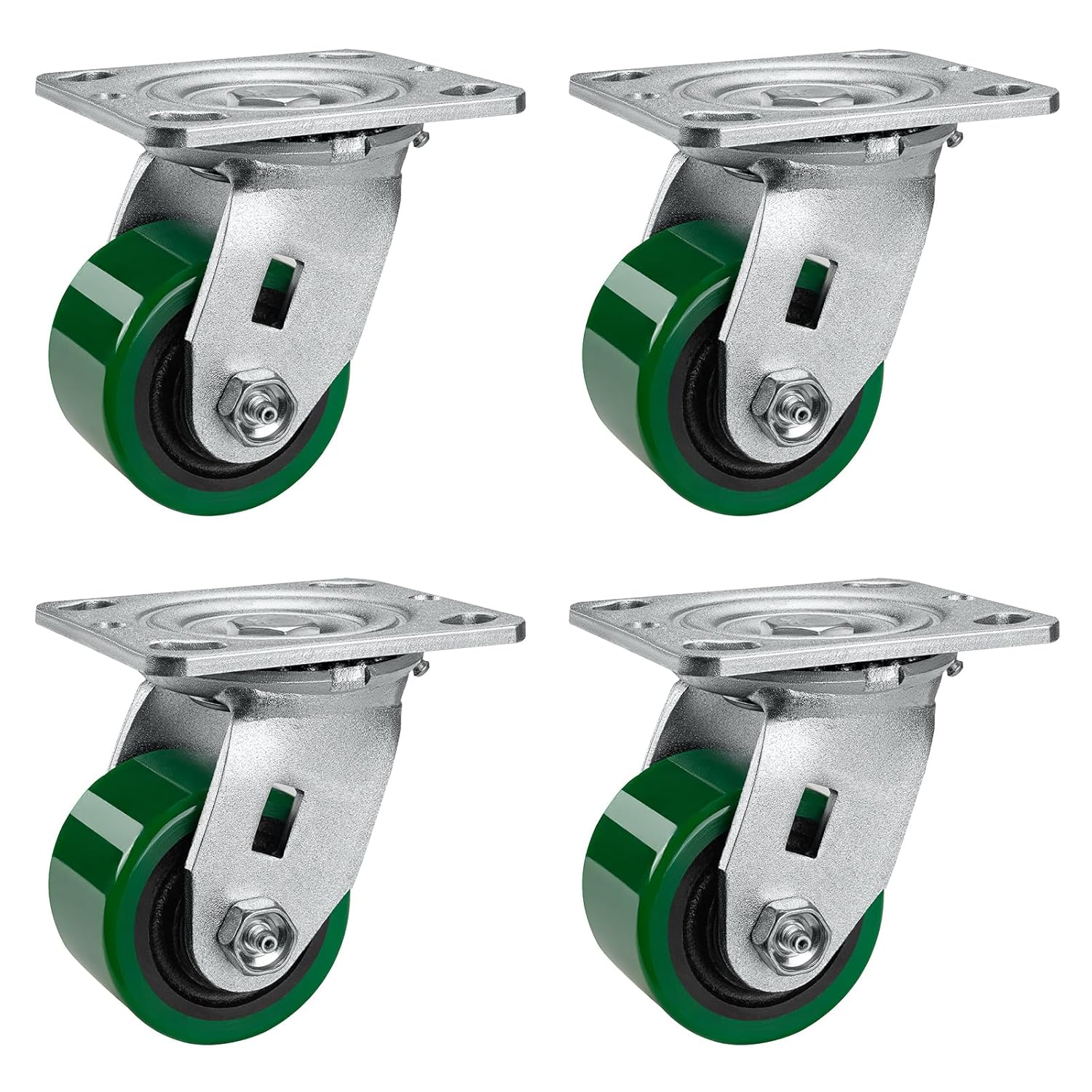CAPACITY: Each Caster wheels for industrial has a weight-bearing capacity of 800lbs. Casters Diameter: 3", Width: 2", Top Plate: 4x 4-1/2, Overall Height: 4-1/2''.